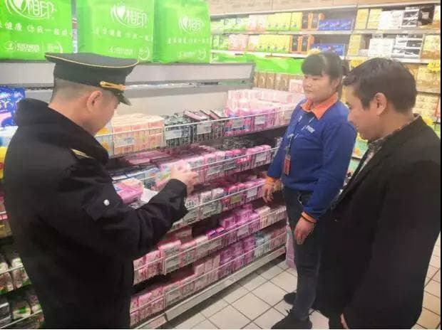 本次巡查针对超市、母婴用品店等经营销售的妇女经期卫生用品,重点检查