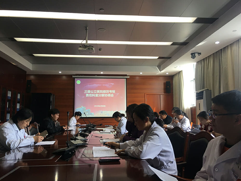 会议首先由杨科长给大家介绍了《意见》的内容及此次责任分解的意义,请各责任科室严格按照曹军华院长的要求,认真学习《意见》,解读考核指标,建立、完善考核路径及方法;接着,医务科赵家强副科长针对分解条款逐项进行指标说明,明确责任科室,对不能明确划分考核项目的予以讨论通过;最后由杨科长指出,医院绩效考核是一项持续系统地工作,对医院的持续稳定发展起到至关重要的作用,希望各相关科室对考核工作持续推进,加强内部规范管理,共同推动医院高质量的发展。