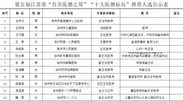 全程导医网 徐州天使风采:党的十九大以来,全市医疗卫生健康系统广大干部职工深入学习贯彻党的十九大精神及“健康中国”战略方针,大力弘扬“敬佑生命、救死扶伤、甘于奉献、大爱无疆”新时代医疗卫生职业精神,涌现出一批先进典型。为此,徐州市委宣传部、市文明办、市卫生健康委联合在全市卫生健康系统内组织开展了第二届“医患同心·感恩有你我心中的健康使者——三‘十佳’评选活动”。活动自开展以来,经过基层单位推选、专家评审、点赞评议、重点审核、综合评定等环节,最后评选出第二届我心中的健康使者——徐州市“十佳医生”、“十佳护士”、“十佳医技工作者”各10名和提名奖各10名。