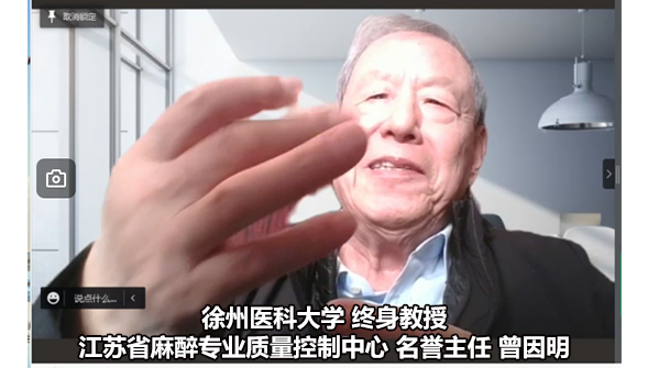 江苏省省麻醉科医疗质量控制中心名誉主任、徐州医科大学终身教授曾因明教授为大会开幕式致词,表示由于受疫情影响,全国多地会议都陆续暂停。庆幸的是多数人在线上会议而相见,少数人因疫情滞留而相聚。他重点讲了三点:一,一个人要能把好事做好,把坏事做出好的结果。希望大家因势而谋,从现实层面寻找可以做的事,从而把事情做得更好;二、新一届麻醉质控中心为江苏省麻醉质控工作开辟了新篇章,守业必衰,创业有望,过去的基本经验要继承,但更重要的是要创业,要把质控工作推向更高的平台;三、要探索新的工作模式,跟上新的形势,适应新的坏境,作出新的成绩,希望全省146家质控单位齐心协力,把江苏麻醉推向更高的平台。