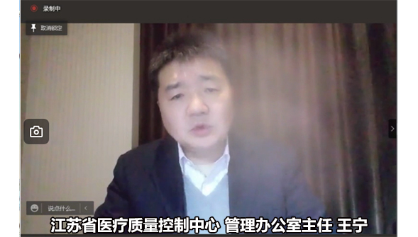 王宁教授做了《完善医疗质控中心建设助力医院高质量发展》专题报告,分别从我国医疗质量管理与控制体系、我国医疗质控中心建设存在问题、江苏省医疗质量控制中心建设实践、医疗质控中心助推医院高质量发展等四个方面对质控中心的工作和各位专家做交流分享,以期共同改进医疗质量氛围。王宁教授最后强调,江苏赋予各个质控中心的使命是:争当表率、争做示范、走在前列,带领江苏攀登最高峰。