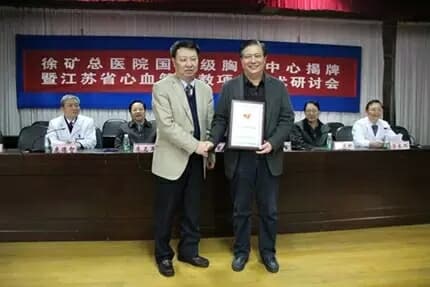 全程导医网 徐州健康新闻/矿总院专题:3月14日,江苏省首家国家级胸痛中心正式落户徐矿总医院。当日,中华医学会心电生理与起搏分会副主任委员、CSPE室性心律失常工作委员会主任委员曹克将教授,将中华医学会心血管病分会、中国胸痛中心认证委员会认证证书颁发给了徐矿集团总医院,并举行了揭牌仪式。