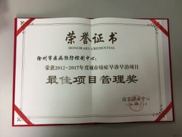徐州市2014年启动开展城市癌症早诊早治项目工作以来,市卫生计生委统筹协调,加强医防合作,按照“政府主导、部门合作、机构协作、全社会参与”的原则,市肿瘤医院、市疾控中心、各区疾控中心及辖区28个社区卫生服务中心紧密合作,克服各种困难,圆满的完成了各年度早诊筛查任务。在项目的引领带动下,通过建立基于各级肿瘤防治专业医疗机构、疾病预防控制机构、基层医疗卫生机构“三位一体”紧密协作的肿瘤防治管理体制,逐步健全和完善各协作部门肿瘤防治职责和医防协作模式。形成了“筛查随访在基层、规范诊疗在医院,质控指导在疾控”的协作运行机制,被国家卫生计生委、国家癌症中心作为“徐州模式”全国推广。市肿瘤医院和市疾控中心密切协作,2016年在全国率先自主研发了“徐州市肿瘤信息化管理系统”,实现覆盖全市医疗机构出院肿瘤患者的信息自动登记上报、建档,并逐步实现高危人群评估、监测、健康追踪、医患互动、科普宣传等功能,提高对肿瘤患者和高危人群的健康监测和随访管理水平。2017年开发徐州市肿瘤筛查、评估及预约体检系统,提高了工作效率,减少了社区卫生服务中心的工作量,很好的促进了2017年度筛查任务的完成。国家癌症中心2017年来徐州进行现场调研,认为徐州市信息平台建设将会很好的促进地区肿瘤一体化管理方案的实施。
