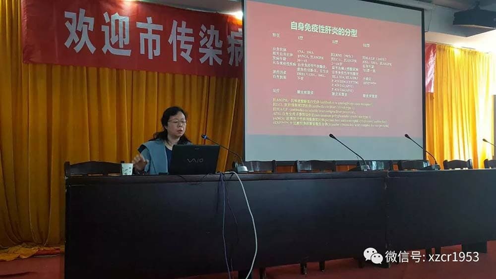 在3.18爱肝日即将来临之际,徐州市公共卫生医疗中心肝病科专家梁艳丽主任来到徐矿第一医院,开展肝病相关知识讲座。梁艳丽主任授课主题是“自身免疫性肝病”,梁艳丽主任详细就自身免疫性肝炎的概念、病理变化特点、临床表现、诊断依据特点、分型治疗以及自身免疫性肝炎和其它肝病的关系进行了详细讲解。梁主任指出自身免疫性肝炎虽然很难预防,但却可以控制,及早发现、及时治疗极为重要。