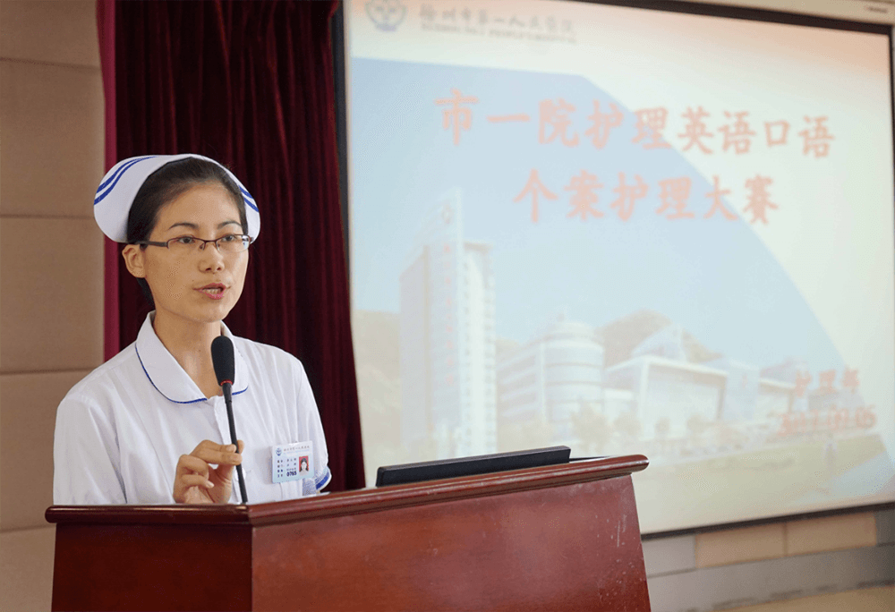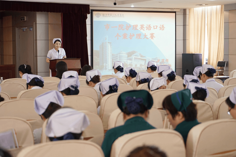 全成导医网 徐州护理网/护理频道:(通讯员 韩黎雯 王达腾 护理部)为了进一步提高护理人员的英语口语能力,适应护理专业国际间交流的需要,发现与培养护理双语人才,更好地配合江苏省护理学会开展护理英语口语(个案护理)比赛。9月5日,市一院护理英语口语个案护理大赛在市一院综合楼六楼学术报告厅如期举行。据了解,7位参赛者经过护理部前期层层选拔,脱颖而出,抽签确定出场顺序。10分钟的自我介绍和个案护理汇报后,进入评委提问互动环节,比赛全程采用全英文陈述、问答。