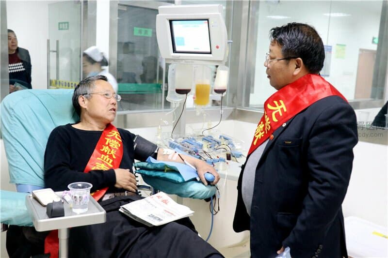 江苏省十大慈善楷模、徐州心连心志愿公益服务中心的主任孔令喜、党支部书记肖宜柱也参加了此次捐献血小板的活动,