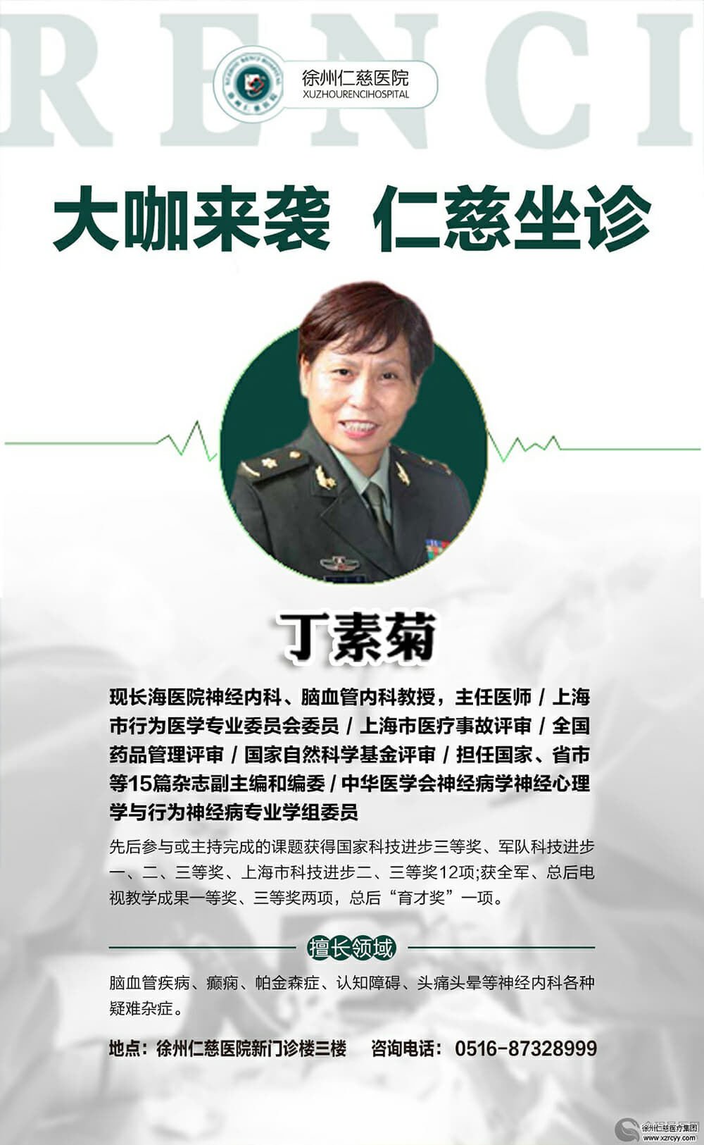 全程导医网 通知公告:2月24日(正月初九),国内著名神经内科专家,来自上海长海医院神经内科、脑血管内科的主任医师、博士生导师丁素菊教授将如约亲临徐州仁慈医院坐诊,为众多深受神经及脑血管疾病困扰的患者带来健康福音。