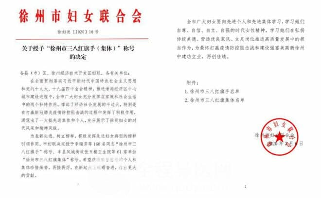 全程导医网 徐州妇幼保健频道:2020年3月6日,徐州市妇幼保健院援鄂医疗队队员王辉同志,被市妇联授予“徐州市三八红旗手”荣誉称号。作为第一批援鄂医疗队员的她,此时已在武汉市江夏区第一人民医院呼吸科重症监护室奋战了40余天。