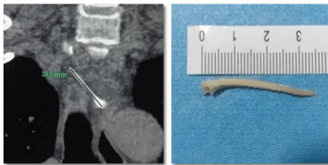 手术过程中,肖烨主任带领医务人员通过在患者十二指肠处插入一根柔软的管子,借助X光,发现患者的胆总管扩张,宽度大约有10毫米。在胆总管里,他们找到了一块直径约5毫米的小石头。为了取出这块结石,他们巧妙地切开了胆总管的开口处,然后使用一个8毫米宽的特殊气囊,像气球一样扩张开来,这样就能顺利地通过胆总管。接着,他们用一个取石球囊,像网兜一样把结石紧紧抓住并取了出来。结石取出后,他们还清理了胆道,以确保胆汁能够顺畅流动。最后,他们在患者的鼻子里放入了一根细管(鼻胆管),一直延伸到患者肝脏附近的胆管内,并连接着一个引流袋,帮助胆汁流出,确保胆汁不会倒流。X光显示,这根管子的位置准确。