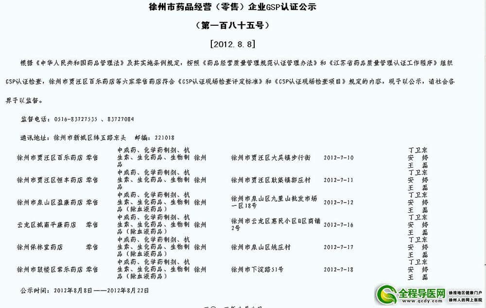 徐州市卫生计生委拟批准设置“徐州同康中医门诊部”公示书