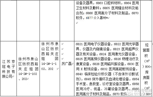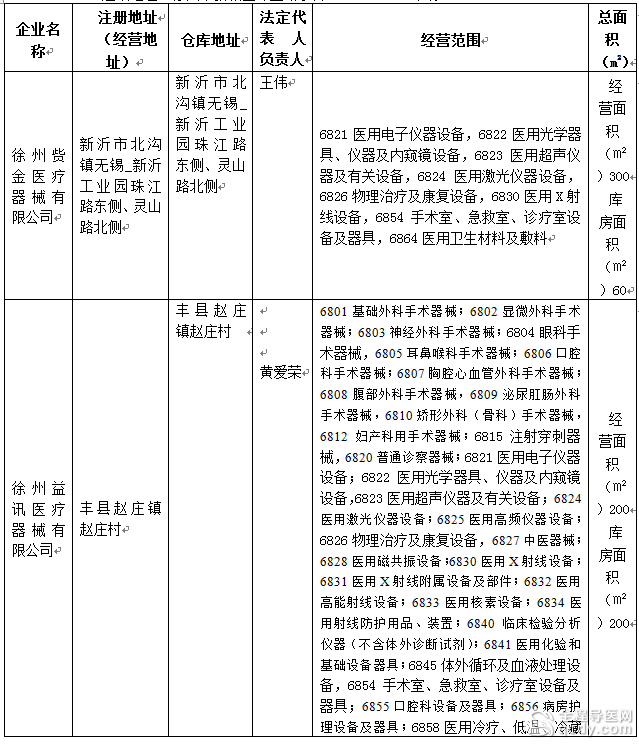 徐州市医疗器械经营企业情况公示(第1596号)