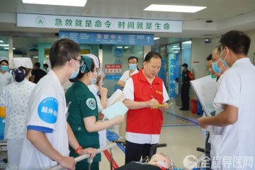 全程导医网 徐矿总院频道:为了检验各科室的现场应急处置能力,并及时发现应急工作中存在的不足和缺陷,提高医护人员应对突发事件的快速反应能力和处置能力,8月18日,徐矿总医院开展了批量接收伤病员应急演练。院长荣良群带领院领导班子以及相关科室负责人共同参与了此次演练。