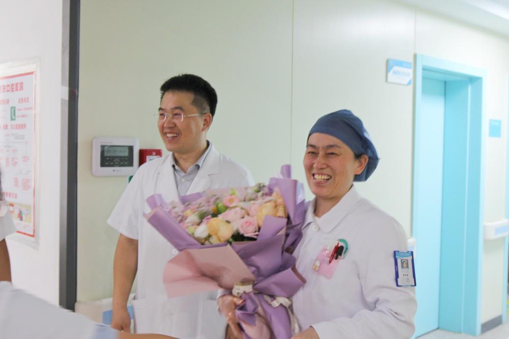 清晨的医院,弥漫着节日的芬芳。院党委副书记、院长袁长永带领领导班子及相关科室负责人,手捧象征祝福与敬意的鲜花与蛋糕,深入各临床诊室一线。“辛苦了,节日快乐!”