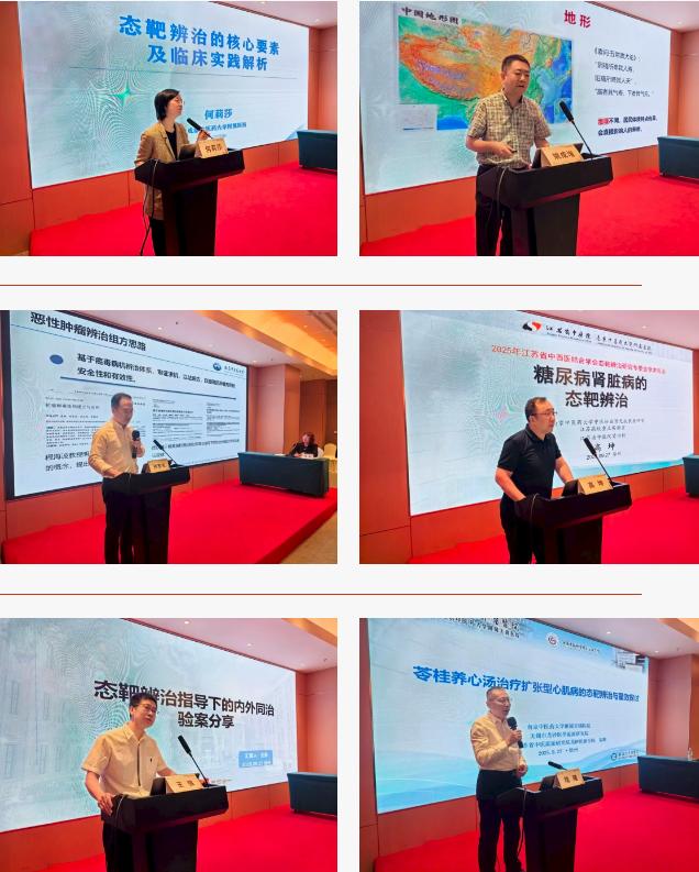 现场邀请了多位国内知名专家授课,分享内容涵盖多领域:成都中医药大学附属医院何莉莎教授分享《态靶辨治的核心要素及临床实践解析》、上海中医药大学附属曙光医院姚成增分享《再谈三因制宜》、南京中医药大学孙东东教授分享《抗癌解毒中药调态打靶抗肿瘤实践与探讨》、江苏省中医院高坤教授分享《糖尿病肾脏病的态靶辨治》、天仁合一智慧中医院王强教授分享《态靶辨治指导下的内外同治验案分享》、无锡市中医医院陆曙教授分享《苓桂养心汤治疗扩张型心肌病的态靶辨治与量效探讨》、中国中医科学院广安门医院焦娟教授分享《基于“体脏合痹”学说构建类风湿关节炎态靶辨治体系》、扬州大学临床中医学院戴小军教授分享《基于核心症状中医肿瘤基础及临床研究》、长春中医药大学陈锐教授分享《态靶辨治甲状腺功能亢进症》、陕西中医药大学第二附属医院雷烨教授分享《葛芪平渴丸基于“态靶辨治”理论治疗2型糖尿病“肥糖脂络”的疗效分析》。