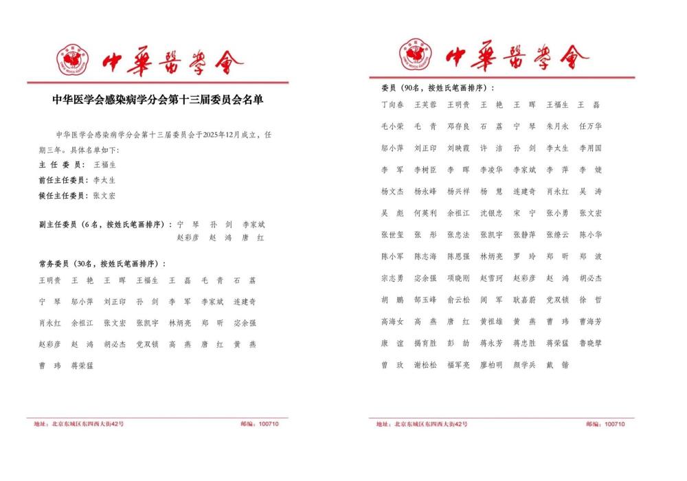 中华医学会感染病学分会是引领我国感染病学发展、推动学术交流、提升防治水平的核心专业学术组织。其委员均是在全国感染病学领域具有广泛影响力和公认学术地位的专家学者。颜学兵教授的当选,不仅是其个人学术成就与专业能力获得国家级权威学术平台的高度认可,也是对我院感染性疾病科整体学术水平、临床技术实力及学科建设成果的充分肯定。