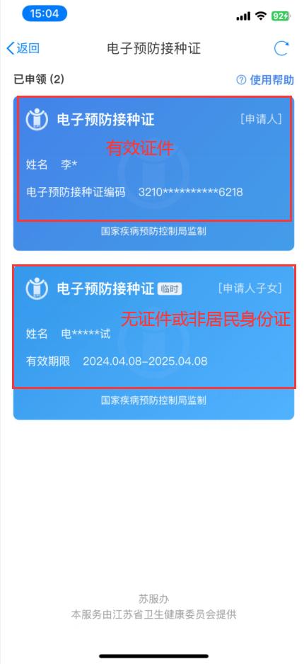 注:受种者档案上,本人或监护人身份证号需与苏服办认证身份证号一致。