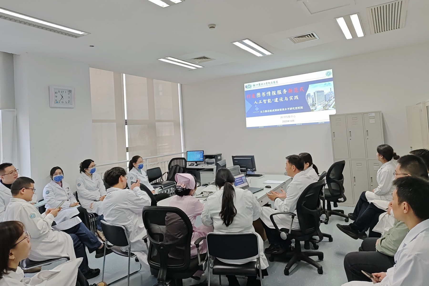 全程导医网 徐州卫生信息:为推动人工智能赋能科研工作,促进高水平研究型医院建设,12月29日,徐医附院图书情报中心全体馆员走进药学部开展《AI赋能资源检索》培训。图书情报中心赵光主任主持。药学部王涛主任团队成员、图书情报中心全体馆员等30余人参加。
