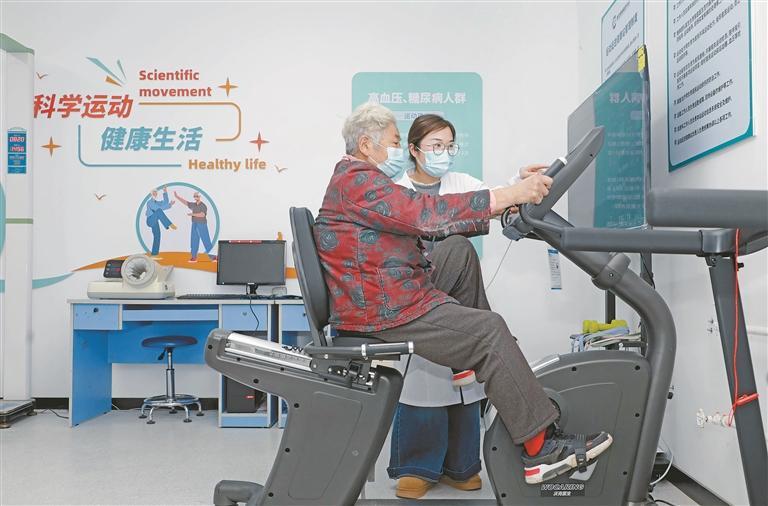 “‘三高共管六病同防’理念,是以高血压、高血糖、高血脂为防治重点,对冠心病、脑卒中、肾病综合征等6种并发症开展预防、筛查、治疗、康复闭环管理。”沛县沛城镇卫生院相关负责人表示,通过整合体育和医疗康复资源,他们推出慢病综合服务包,形成体医结合的疾病管理与健康服务模式,为肥胖、慢病人群提供体质监测、运动处方、康复指导等精准化服务。