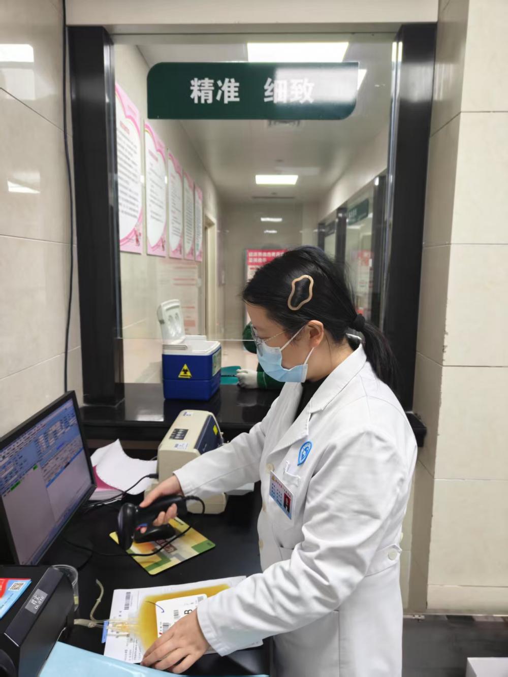 姓名、血型、血袋编号、配血结果……每一袋发往病区的血液,都必须经过反复核对、精准无误。科室工作人员深知,这些血液将用于患者的治疗,用于生命的延续,责任重于泰山。