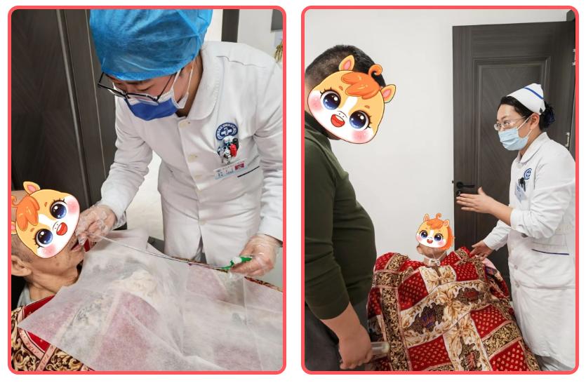 在患者卧室,赵双凭借娴熟的专业技能,规范并轻柔地完成留置胃管置入操作,全程精准顺畅,及时解决了患者无法进食饮水的燃眉之急。操作完成后,吴秀玮耐心细致地为患者及家属开展留置胃管注意事项及摄食指导,围绕饮食、饮水及吞咽功能训练等内容逐一讲解,详细叮嘱居家护理要点,缓解家属的担忧,保障患者后续居家护理安全有效。