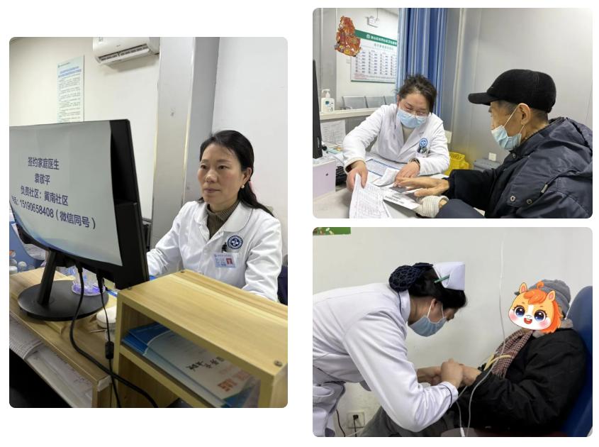 全科诊室里,医生细心为就诊患者问诊查体、诊疗服务;输液室中,护士细致地为患者进行静脉穿刺;慢病管理岗位上,工作人员用心服务、细致随访,守护居民健康。