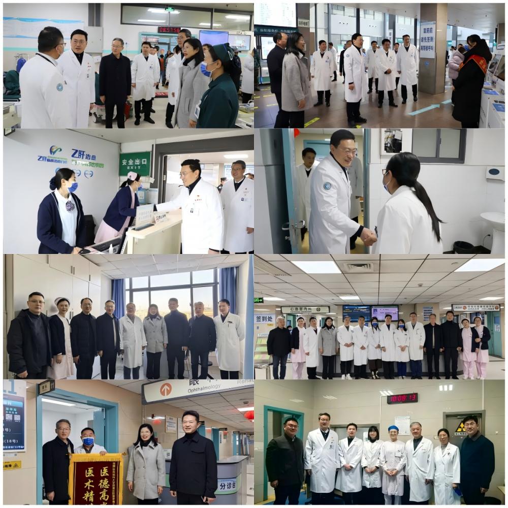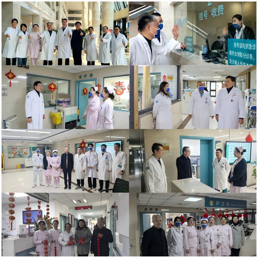 初一上午,院领导班子带领部分职能部门人员先后看望了两个院区在门诊、急诊、住院病区、手术室、后勤保障等区域坚守岗位的一线工作人员。“新年好!”“大家辛苦了!”“给大家拜年了!”每到一处,院领导都与在岗职工亲切握手交谈,详细询问节日期间医疗运行、患者收治、医疗保障等情况,向他们致以新春的祝福和节日的问候。同时,叮嘱大家严明工作作风和工作纪律,在保障好一线医务工作者自身安全的同时,坚决守护好人民群众的生命安全和身体健康,确保全院人员度过一个欢乐祥和、平安健康的春节。