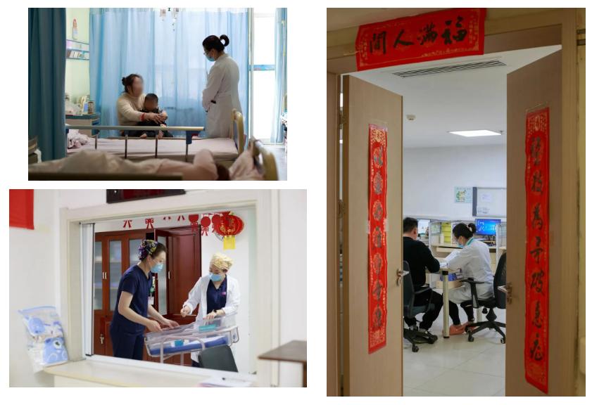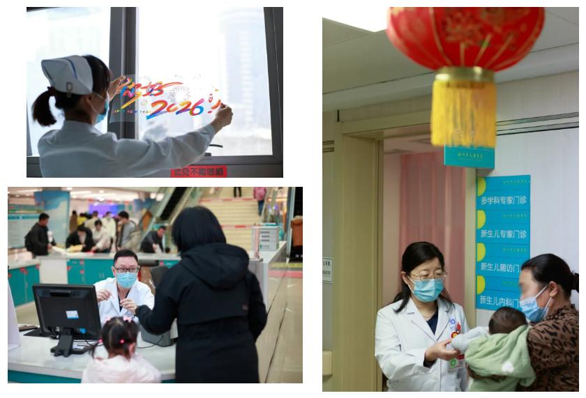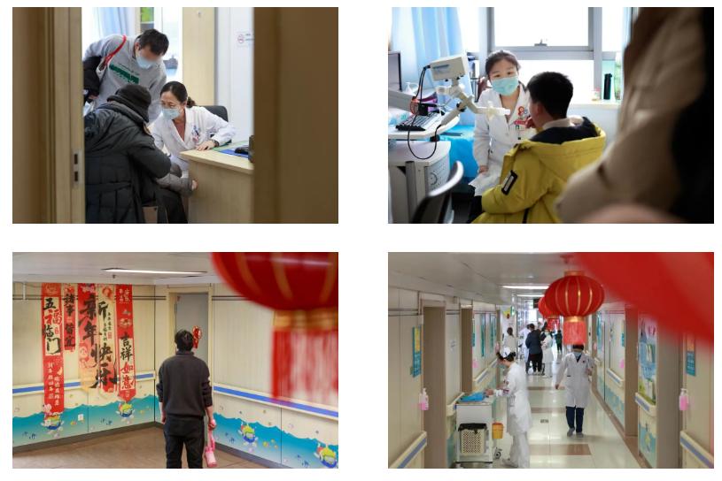 急诊抢救室灯火通明,红色灯笼高挂,节日氛围浓厚,却丝毫未减医护工作的紧张有序;门诊大厅里,医生耐心接诊,护士细心安抚患儿情绪,每一个微笑都传递着专业与关爱;医学影像,技师专注操作CT设备,确保检查精准高效;病房走廊上,医护人员步履匆匆,穿梭于各个病床之间,守护着孩子们的健康。从挂号窗口到治疗室,从病房到监护室,从护理台到患者床旁,每一位白衣天使都在默默奉献。