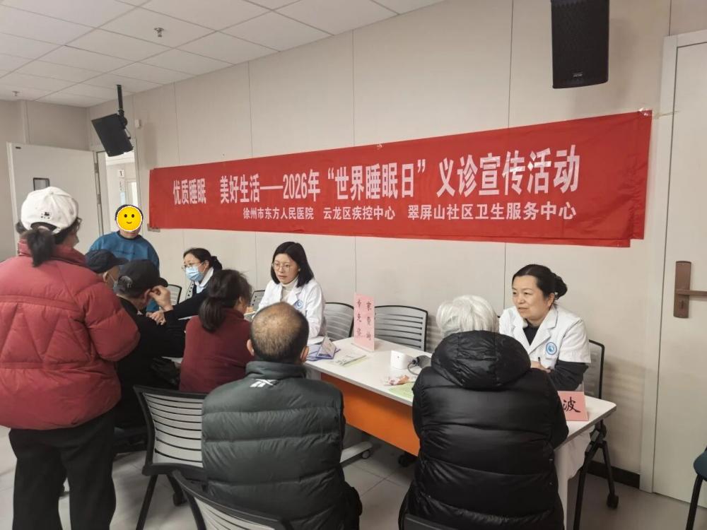 全程导医网 徐州精神卫生频道:2026年3月21日是第26个世界睡眠日,今年主题为优质睡眠、美好生活。为普及科学睡眠知识、提升市民睡眠健康素养,徐州市东方人民医院睡眠医学中心一科、二科,走进徐州市翠屏山社区卫生服务中心,开展睡眠健康科普讲座与公益义诊活动,把专业睡眠诊疗服务送到家门口。
