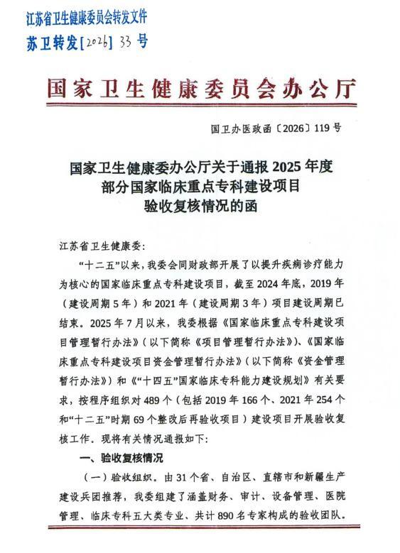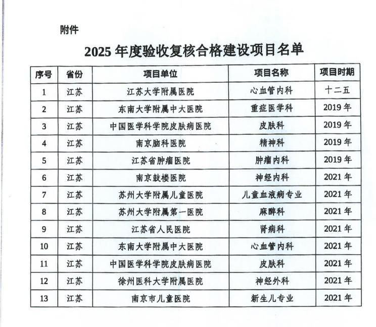 全程导医网 徐州健康信息:近日,国家卫生健康委员会办公厅通报2025年度国家临床重点专科建设项目验收复核结果,徐州医科大学附属医院神经外科顺利通过验收复核。