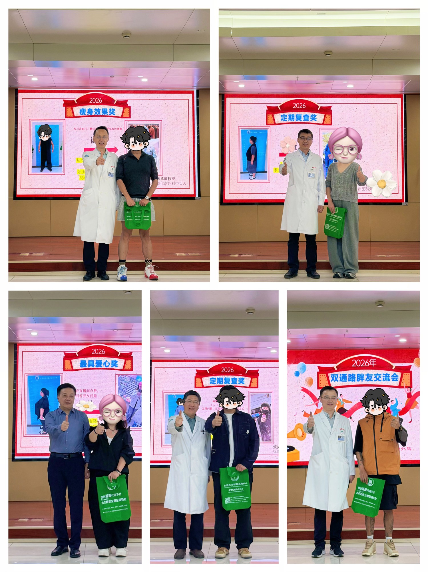 活动首先为胖友们进行了健康体检,涵盖血压、血糖测量及体脂分析,为后续交流提供科学依据。互动环节,专家们围绕双通道术后分阶段饮食方案展开讲解,明确蛋白质足量摄入、复合维生素长期补充的关键原则,现场气氛热烈。现场评选出“最具爱心奖”“瘦身效果最好奖”“代谢综合征缓解最好奖”“体型变化最大奖”“最佳运动奖”的减重明星们纷纷分享心得,讲述了从术前困扰到术后蜕变的真实经历,引发全场共鸣。