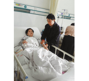 近日,市慈善总会一行人带着1.5万元救助金到市肿瘤医院看望任贵侠夫妇,将1.5万元救助金送到任贵侠手中。