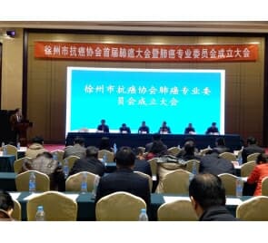 徐州市科协学会部朱晓红部长到会致词,抗癌协会理事长、徐州市第一人民医院肿瘤内科王伟林主任宣读徐州市抗癌协会第一届肿瘤个体化治疗专业委员会组成人员名单:徐医附院肿瘤科杜秀平主任任主任委员;徐州市第一人民医院肿瘤内科主任李金运任副主任委员,胸外科副主任韩冬任副秘书长,肿瘤内科刘太锋任常务委员。