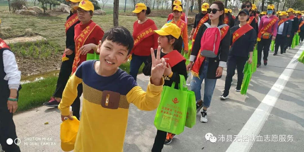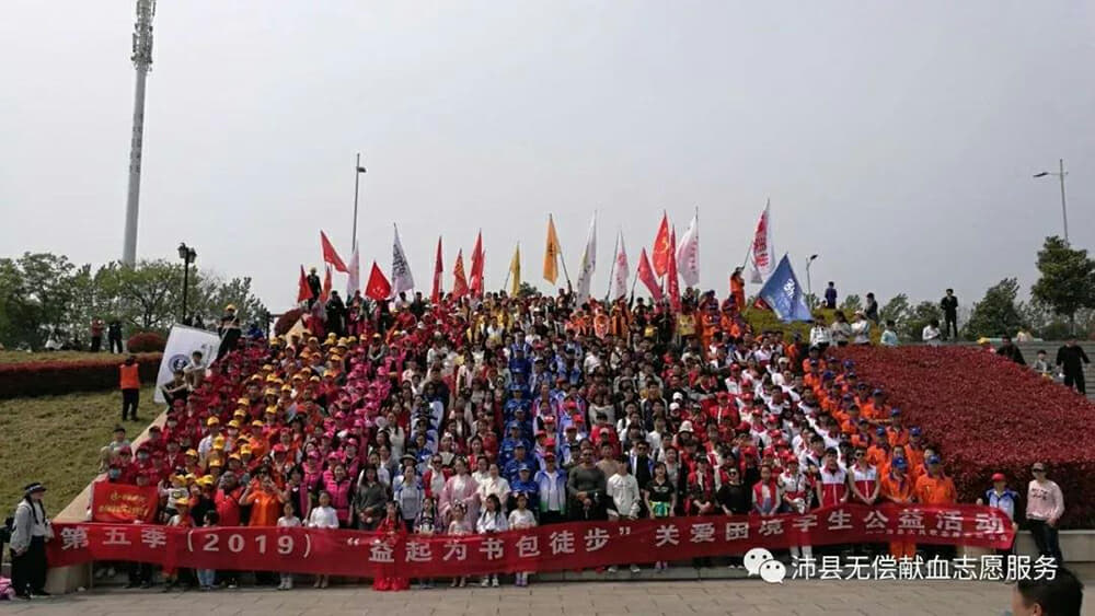 全程导医网 无偿献血:为了更好的宣传无偿献血,提高无偿献血知晓率,壮大沛县无偿献血队伍,4月13日,早上8点在好人广场,沛县无偿献血志愿服务队在冯主任、任队长带领下60余名志愿者参加了2019"益起为书包徒步"助力徒步活动。