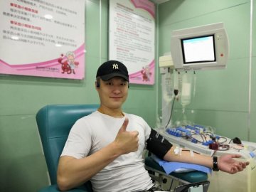 看着妈妈成功完成献血,10岁的儿子过来给了一个大大的赞!