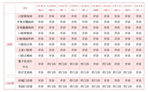 1月28日(周二)、1月29日(周三)方便门诊停诊。