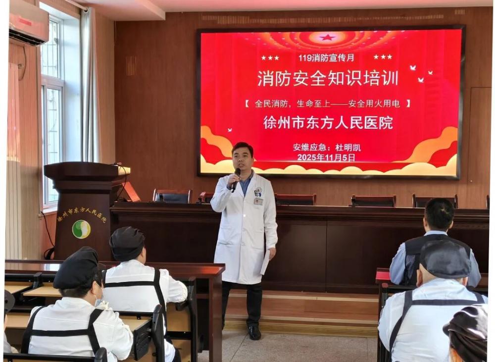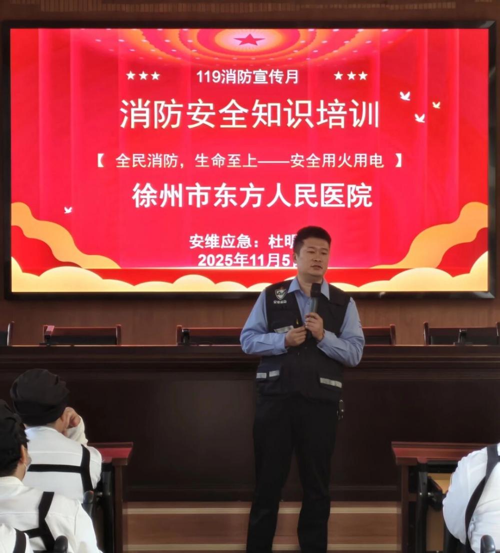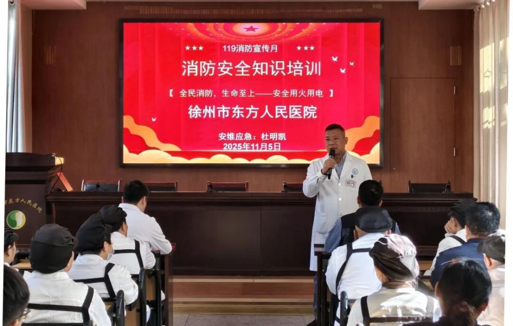 全程导医网 徐州精神卫生专题:按照徐州市东方人民医院“119消防宣传月”活动实施方案要求,医院于11月5日上午开展消防安全培训。分管院长朱相华主持并讲话,安维应急消防安全讲师杜明凯进行授课。