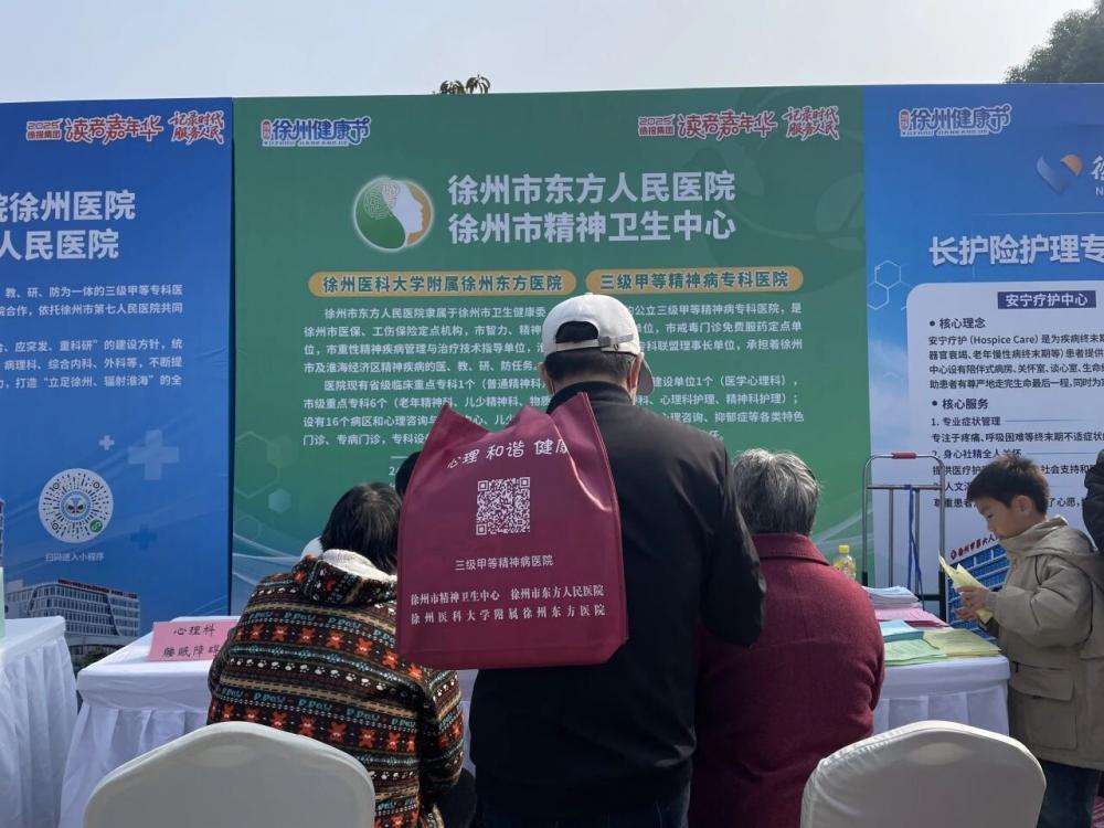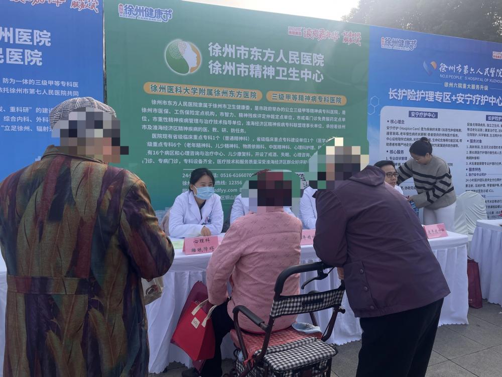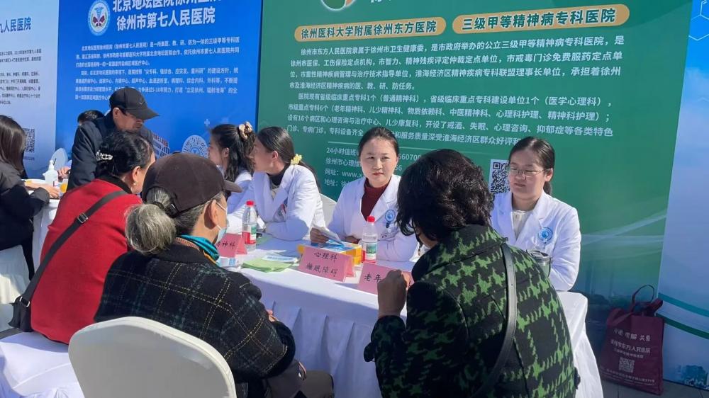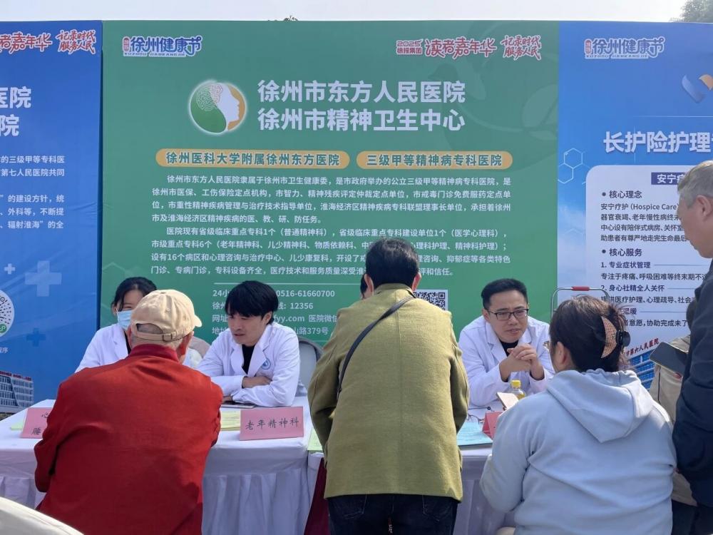 全程导医网 徐州精神卫生专题:2025年11月1日至2日,徐州市东方人民医院组织多学科专家参加由徐州市卫生健康委员会,徐州市医疗保障局,徐州报业传媒集团联合举办的“名医汇聚彭城,共筑健康徐州”为主题的2025年健康节暨名医义诊活动。活动聚焦不同人群健康需求,特别针对老年重点群体提供精准服务,让群众在家门口就能享受到优质便捷的心理健康服务。