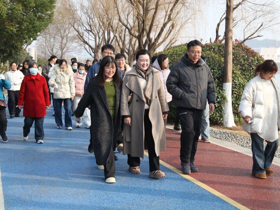 随着开始号令的下达,大家顺着环湖步道有序出发。沿途湖水澄澈、草木含韵,大家或并肩前行、畅谈生活,或相互鼓劲、比拼步伐,形成一道人与自然和谐共生的风景线;部分职工偶尔也会选择放慢脚步,用手机记录下身边美好的点滴日常,风过处,细碎光点随涟漪轻轻晃动,宛若撒落湖中的星辰,大家脸上都洋溢着运动后的畅快与喜悦,纷纷表示,此次活动不仅缓解了日常工作压力,锻炼了身体,更增进了同事间的交流与情谊,为新年开启了一个充满活力的开端。