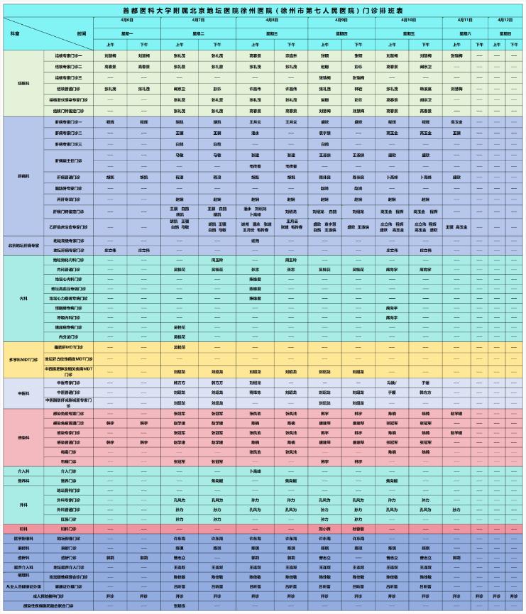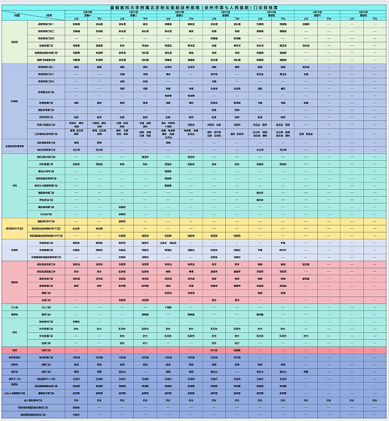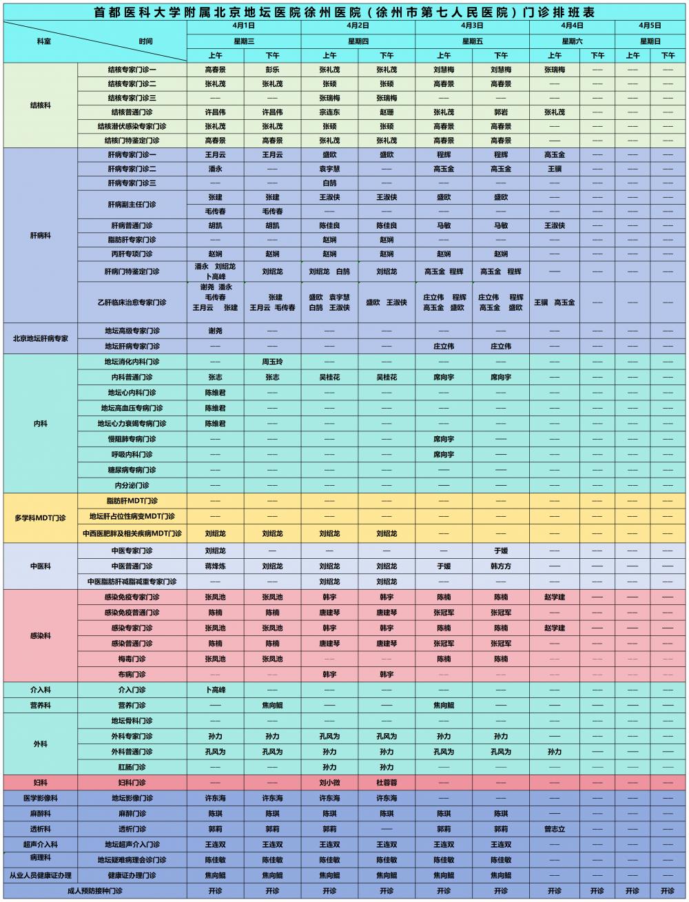 2026年4月1日-30日门诊排班