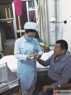 听了护士的话,她没有作声,而是走进病房,亲自动手打来热水,为病人清理身上的粪便,一遍又一遍,直至把病人身上的臭味清除;病人进食困难,口腔内积满食物残渣,发出阵阵腐臭,她细心地用镊子一点点将食物残渣清除干净;看到病人满身褥疮,她运用所掌握的知识及平时积累的经验,配制了祛腐生肌的中药,为患者外敷创面。
