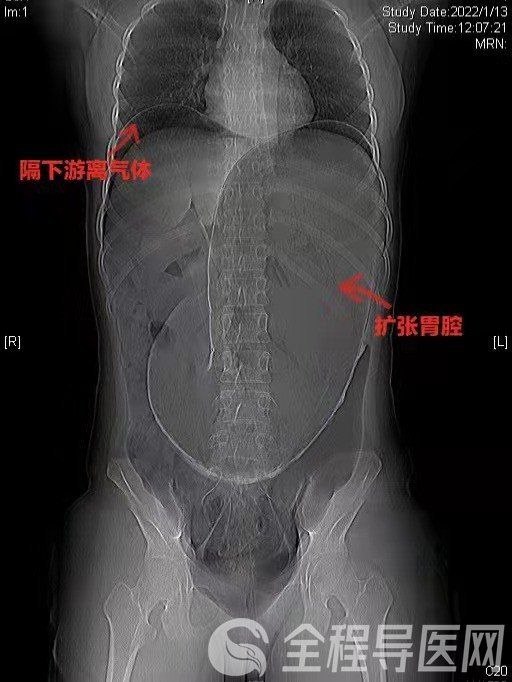 全程导医网 徐州就医信息:1月13日,伴随着急促的救护车鸣笛声,徐医附院急诊中心接诊了一位特殊的患者。一位年轻的女性,肚胀如鼓,腹痛难忍。急诊外科迅速完善初步检查并联系胃肠外科会诊。此刻,时间就是花季少女的生命!胃肠外科张秀忠主任团队立刻投入到紧张有序的治疗中。经过问诊、查体、影像学检查等综合诊断后判定患者胃腔极度扩张、膈下游离气体,提示消化道穿孔。此时患者已有休克表现,病情危急,随时有生命危险,需急诊手术处理。