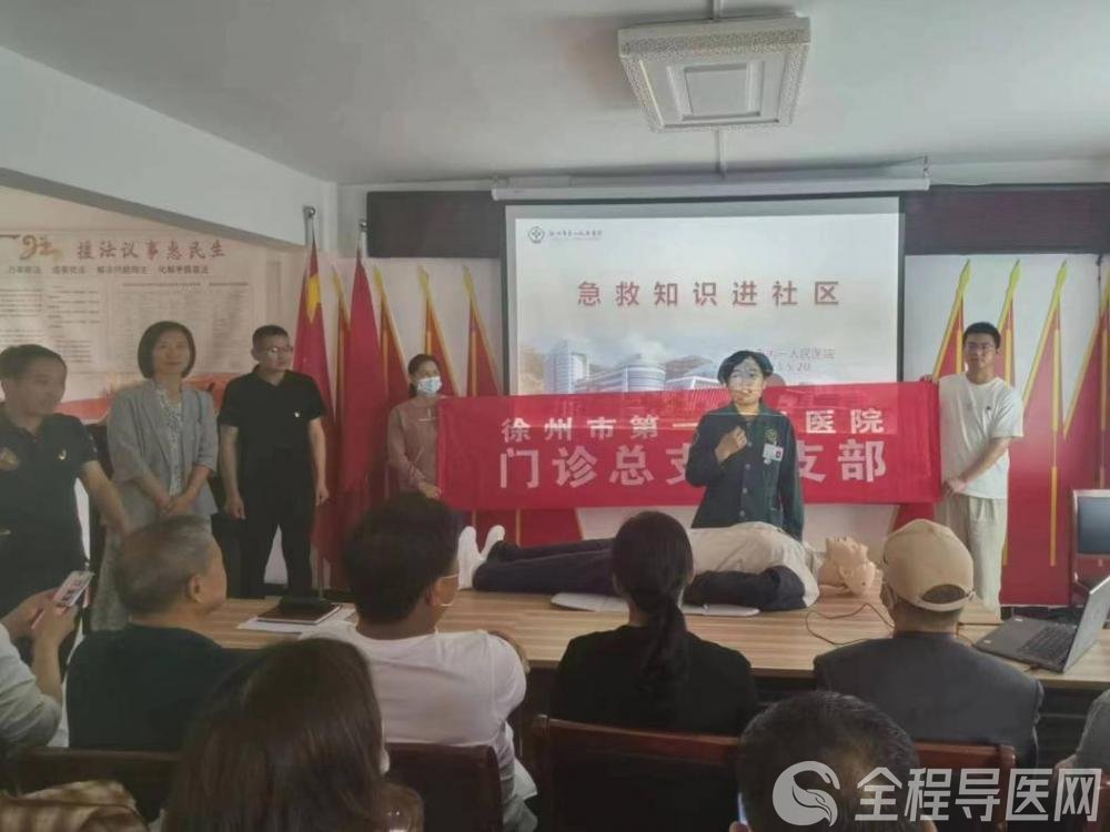 全程导医网 徐州健康信息:为进一步增强百姓的应急救护意识,营造“人人懂急救,人人会急救”的良好氛围,5月20日,徐州市第一人民医院门诊党总支书记王海燕以一名普通党员的身份,与门诊党总支第二党支部党员利用周末时间来到龙腰山社区,开展急救和医学科普知识进社区主题党日活动。检验科副主任余汉忠,急诊医学科护士长黄静,检验科周楠、杨杨、丁佳炜,急诊医学科孙梦雪参加活动。