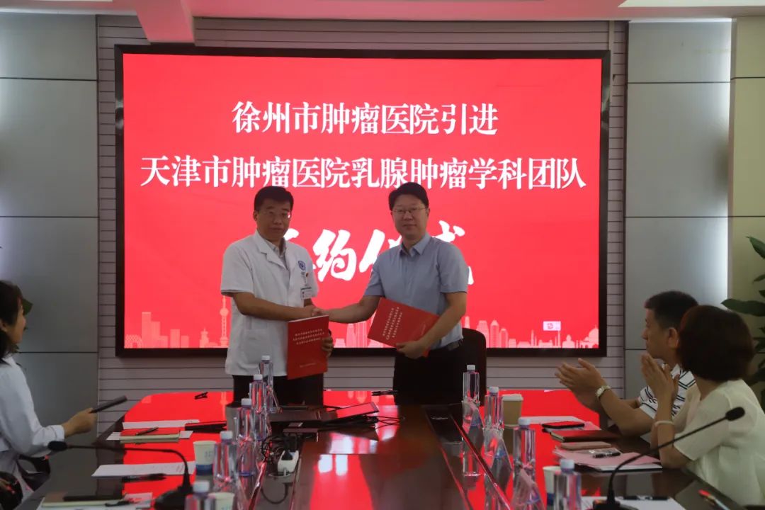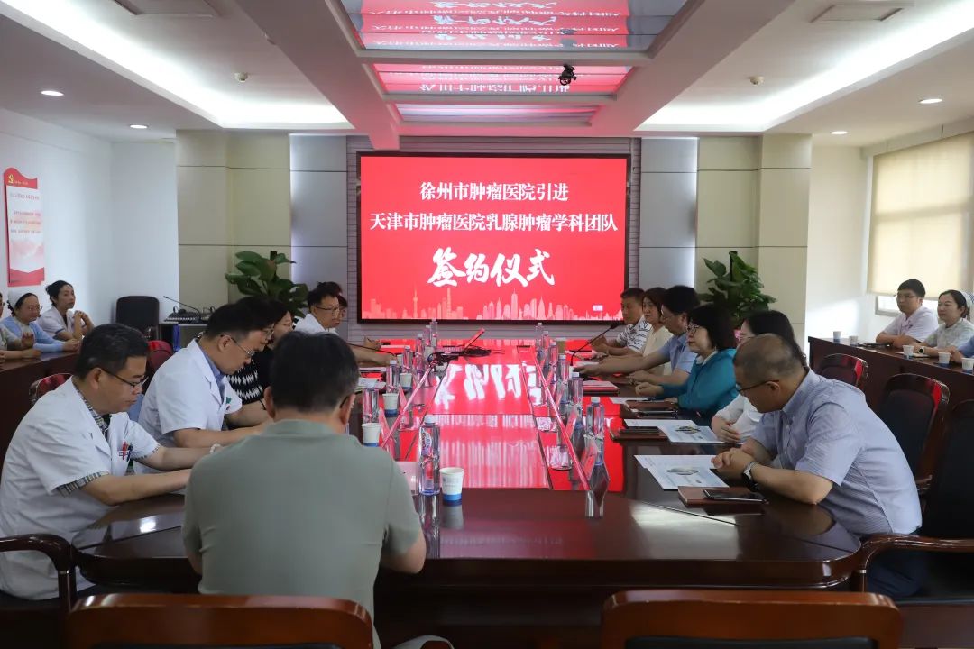 徐州市卫健委副主任常桂秋、天津市肿瘤医院副院长张晓亮、乳腺外科主任刘红,徐州市肿瘤医院党委书记李明、代理院长杨庆及双方学科骨干共同出席。签约仪式由徐州市肿瘤医院副院长王强主持。