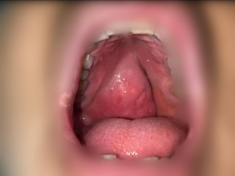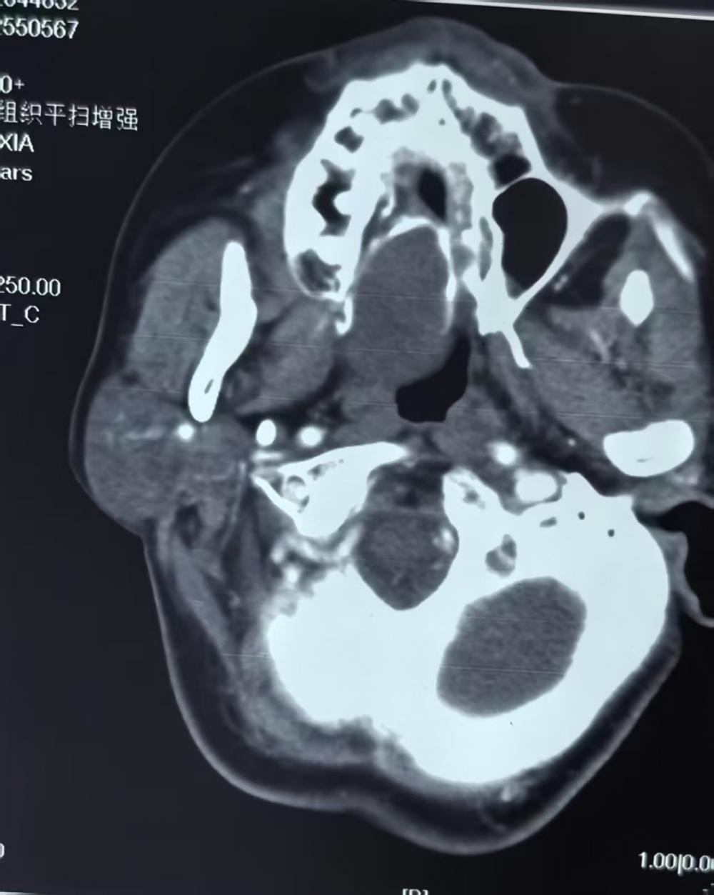 患者王女士(化名)一年前发现右侧腭部隐匿的小肿物,初期未加重视。谁料肿瘤突然生长加速,导致吞咽困难。患者来到徐州市口腔医院,经仔细检查,确诊为"右侧腭部-口咽部交界区巨大肿瘤"。