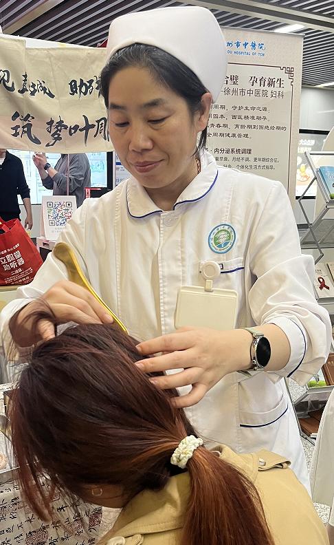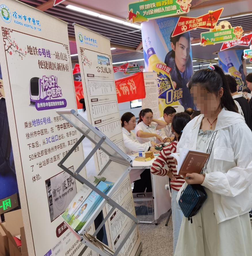 :金秋十月,举国同庆。为积极响应国家“服务百姓健康行动”号召,10月2日下午,徐州市中医院将特色鲜明的中医药健康服务送到了城市脉搏的中心——彭城广场地铁站。在这个双线交汇的都市枢纽,为往来市民,献上了一份特殊的“中医药健康礼”。