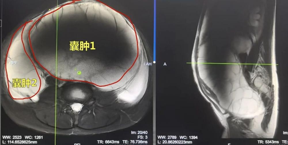经历过一次大手术后,病魔并未放过晴晴,2025年5月,晴晴再次因腹胀到外院检查,彩超提示盆腔囊性包块,大小约240×94mm,她没有选择治疗,而是选择观察,等待寒假处理。肿瘤悄无声息地生长,到了12月复查时,大小已增至306×151×272mm——一个比篮球还大的肿瘤,正压迫着她的身体,已导致肾积水,而日渐隆起的腹部也引来异样的眼光!