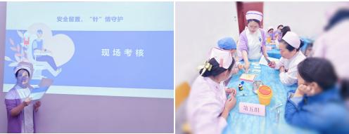 在操作示范环节,静脉治疗专科护士董秀艳、周艺文、曹娟娟进行了标准化现场演示。她们以娴熟的手法,逐一展示了从穿刺角度、无张力粘贴敷贴到脉冲式冲管、正压封管等全套规范流程。每一步操作的细节讲解,都生动诠释了“针情守护”中蕴含的专业、精准与关怀。