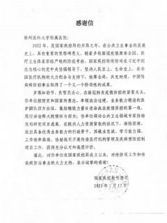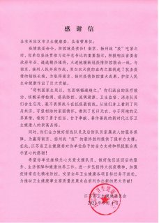 全程导医网 徐州健康消息:月31日上午,一位刚刚出院的患者将两面“医德高尚,医术精湛”的锦旗送到了徐州市第七人民医院肝病一科,同时将一封感谢信张贴在门诊楼前,再三感谢程辉主任、王淑侠主任及科室全体医护人员对他的精心治疗和护理。