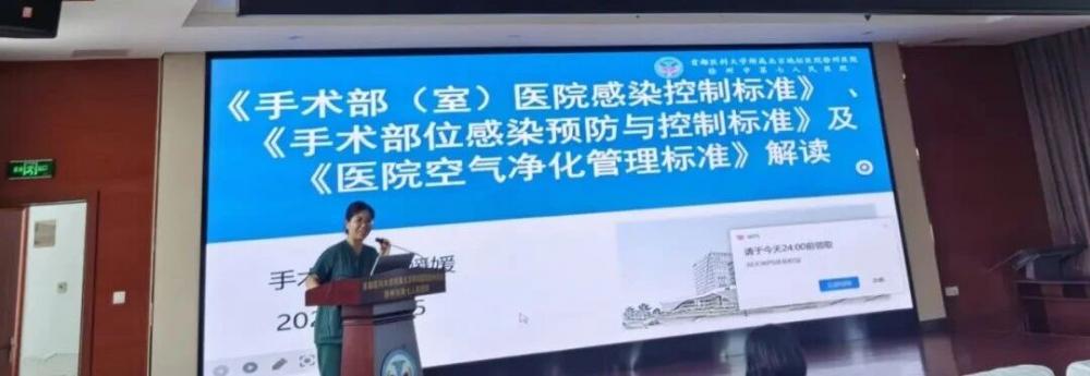手术室护士长黄媛媛作《手术室、手术部位等重点部门与流程的感染预防与控制标准》专题培训。