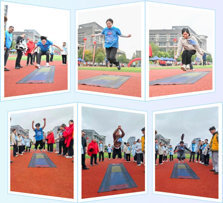 立定跳远场地内,运动员们屈膝、摆臂、蹬地、跳跃,每一个动作都干脆利落,全力向着更远的距离冲刺。
